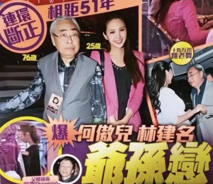 还有已故香港富商林建名与小自己51岁模特何傲儿,当年因女方父亲破产,何傲儿为替父还债与其交往。林建名每月提供高额生活费,但债务还清后,何傲儿逐渐疏远,最终两人转为“干父女”关系。