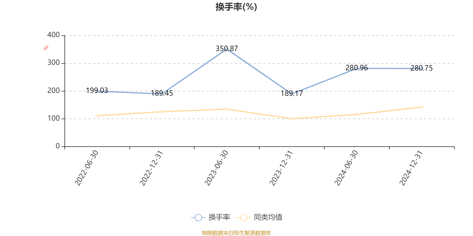 截至2024年12月31日,基金最近一年换手率约569.68%,持续高于同类均值。