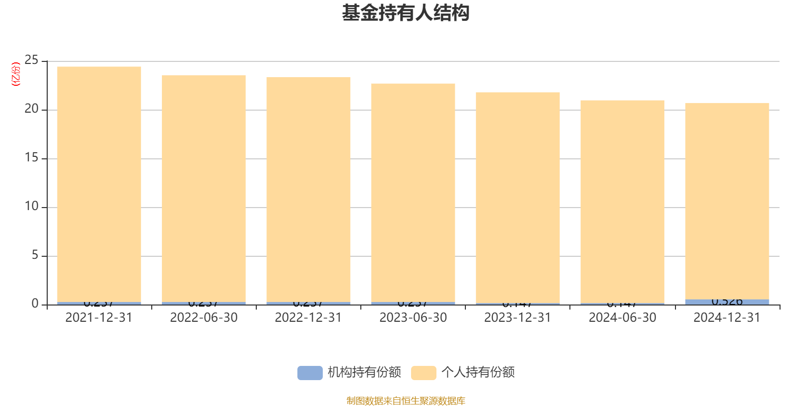 截至2024年12月31日,基金持有人共计1.74万户,合计持有20.67亿份。其中管理人员工持有5.24万份,机构持有份额占比2.55%,个人投资者占比97.45%。