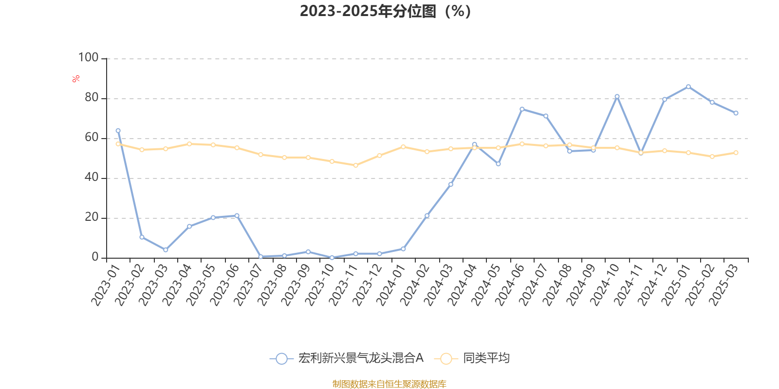 通过所选区间该基金净值增长率分位图,可以观察该基金与同类基金业绩比较情况。图为坐标原点到区间内某时点的净值增长率在同类基金中的分位数。